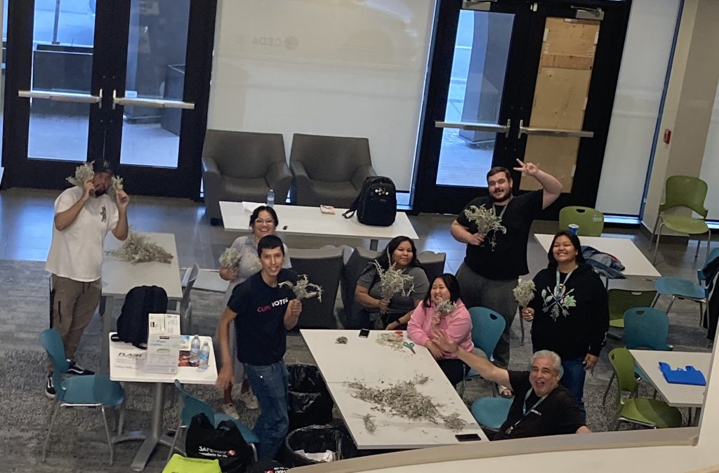 The Pathways Winnipeg team preparing sage to be dried for their medicine basket last summer