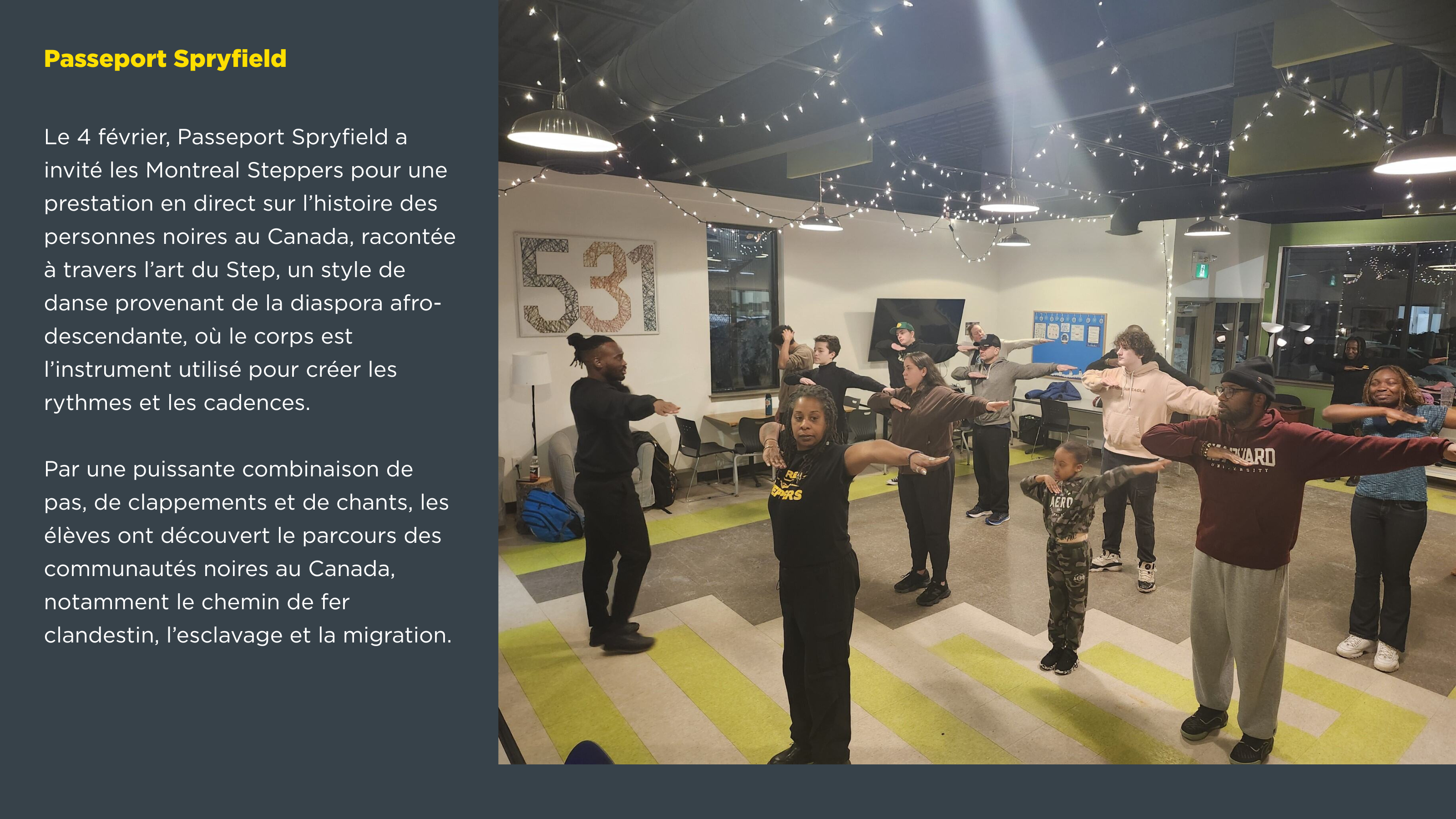 On February 4th, Pathways Spryfield invited the Montreal Steppers for a live presentation on Black Canadian History, told through the art form of step—a Black diasporic dance that uses the body as an instrument to create rhythms and beats. While participating in a powerful combination of stomps, claps, and chants, students learned about the journeysLire la suite “Creating dialogue about Black Canadian History through the art form of Step”